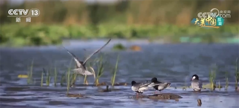 現(xiàn)在我們來到位于河北雄安新區(qū)安新縣白洋淀濕地,這里岸邊花香撲鼻、水波蕩漾、鷗鷺齊飛,在剛剛修復(fù)完工的藻苲淀,39座大小島嶼中有兩座還成為了鳥類保護(hù)的棲息地。