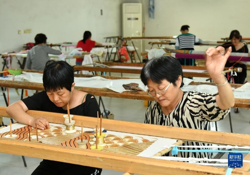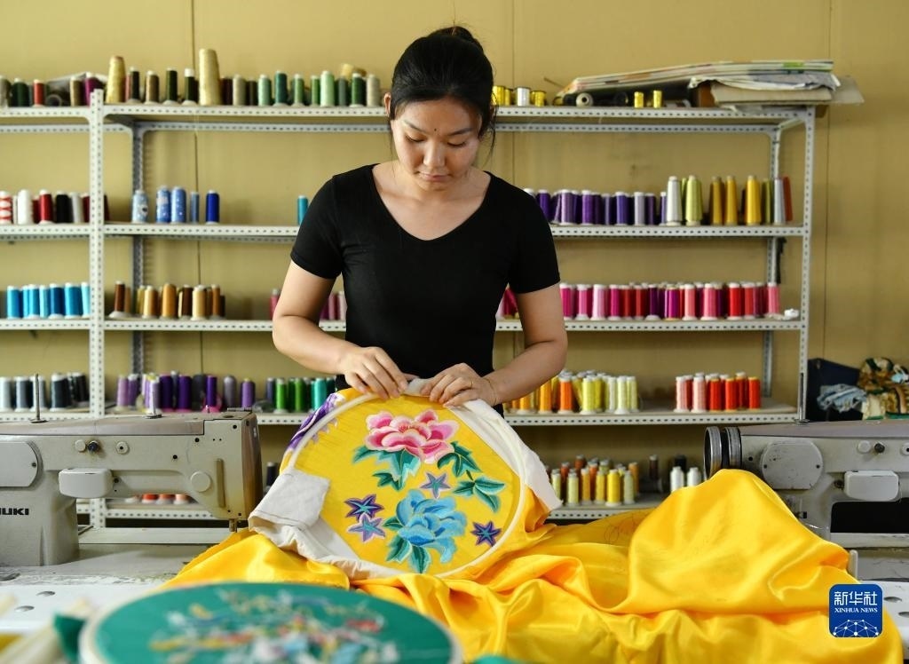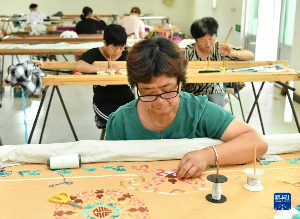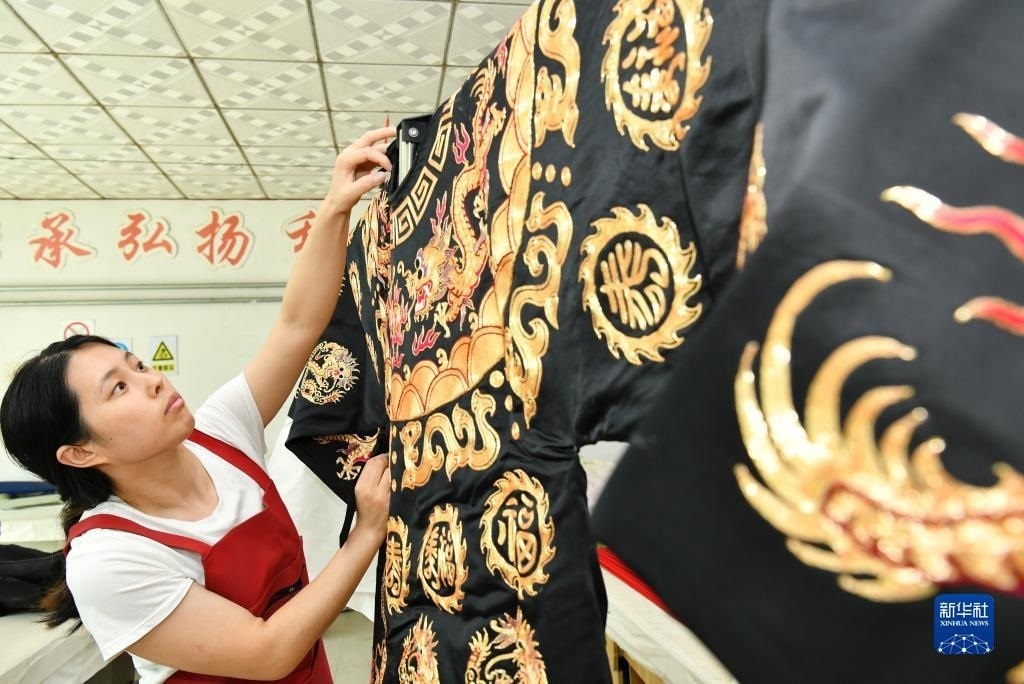 河北省肅寧縣邵莊鄉(xiāng)東高家口村的戲曲服裝服飾制作技藝至今已傳承百余年,2017年被列入滄州市市級(jí)非物質(zhì)文化遺產(chǎn)名錄。近年來(lái),當(dāng)?shù)卦谕七M(jìn)產(chǎn)業(yè)富民的過(guò)程中,積極推進(jìn)傳統(tǒng)技藝與現(xiàn)代工業(yè)生產(chǎn)有機(jī)融合,成立、引進(jìn)服裝加工企業(yè),為100多名當(dāng)?shù)亓羰貗D女提供就業(yè)崗位,在促進(jìn)居民增收的同時(shí),推動(dòng)了傳統(tǒng)非遺的傳承。新華社記者 牟宇 攝