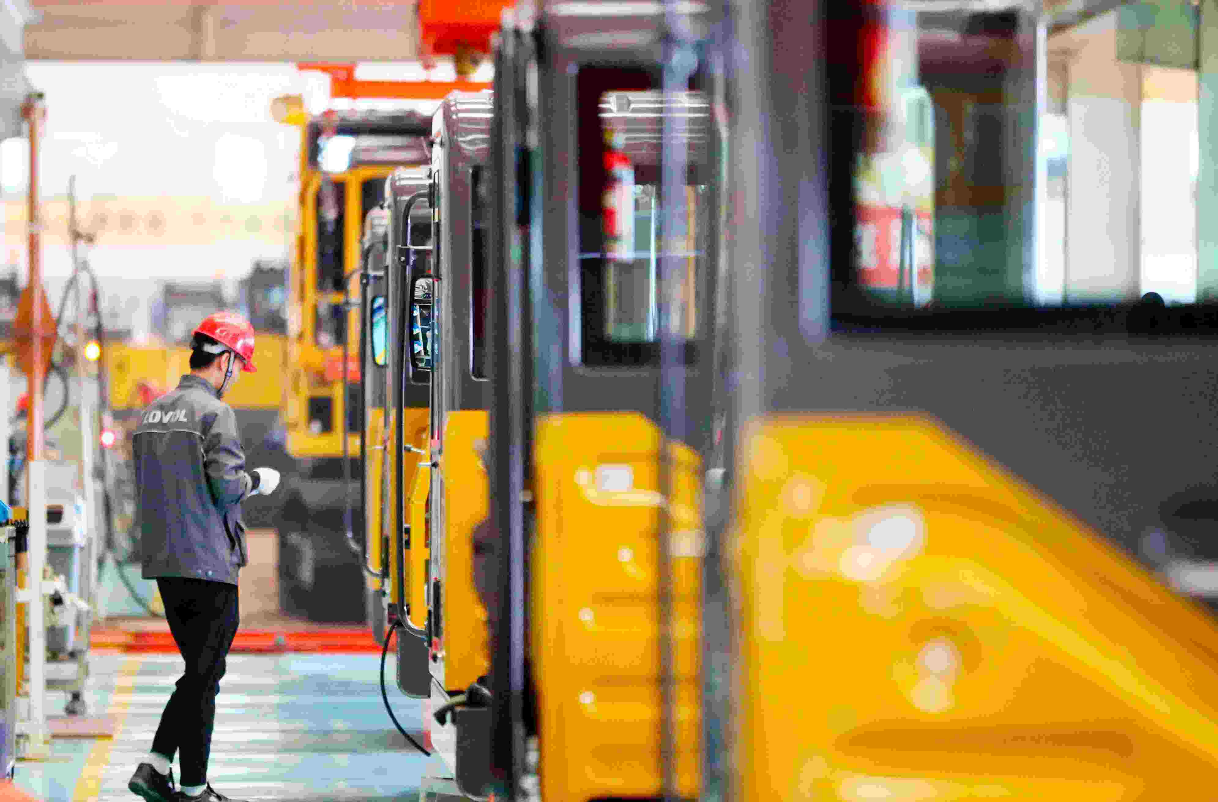 6月14日,在山東自貿(mào)試驗(yàn)區(qū)青島片區(qū)的一家工程機(jī)械公司車間內(nèi)一派繁忙景象,工人們加緊趕制訂單,滿足國內(nèi)外市場需求。今年1-5月份,該公司整機(jī)出口同比增長90.2%。