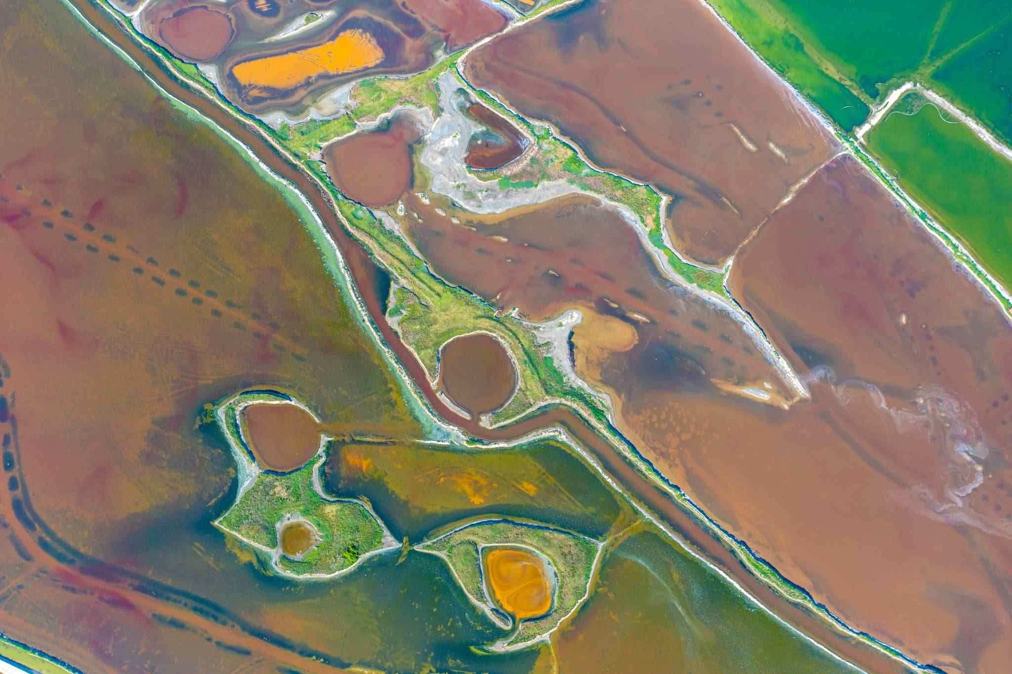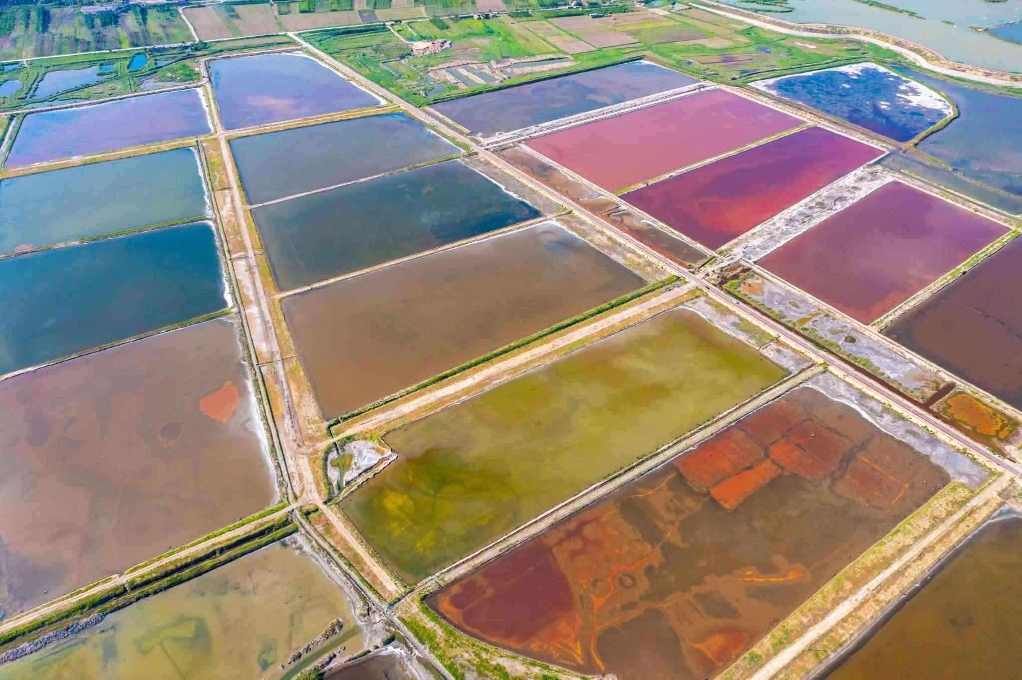 2023年6月14日,山西運(yùn)城,七彩鹽湖呈現(xiàn)出色彩斑斕的景觀,猶如大地調(diào)色板,美不勝收。視覺(jué)中國(guó)