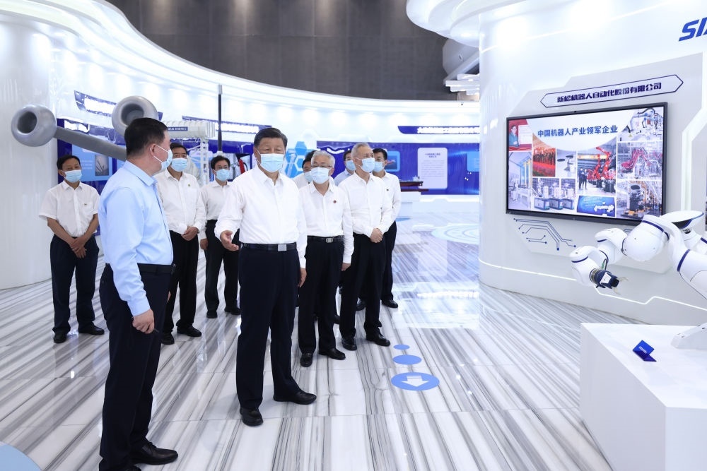 2022年8月17日下午,習近平在遼寧沈陽新松機器人自動化股份有限公司展廳,了解公司生產經營、自主創(chuàng)新情況。