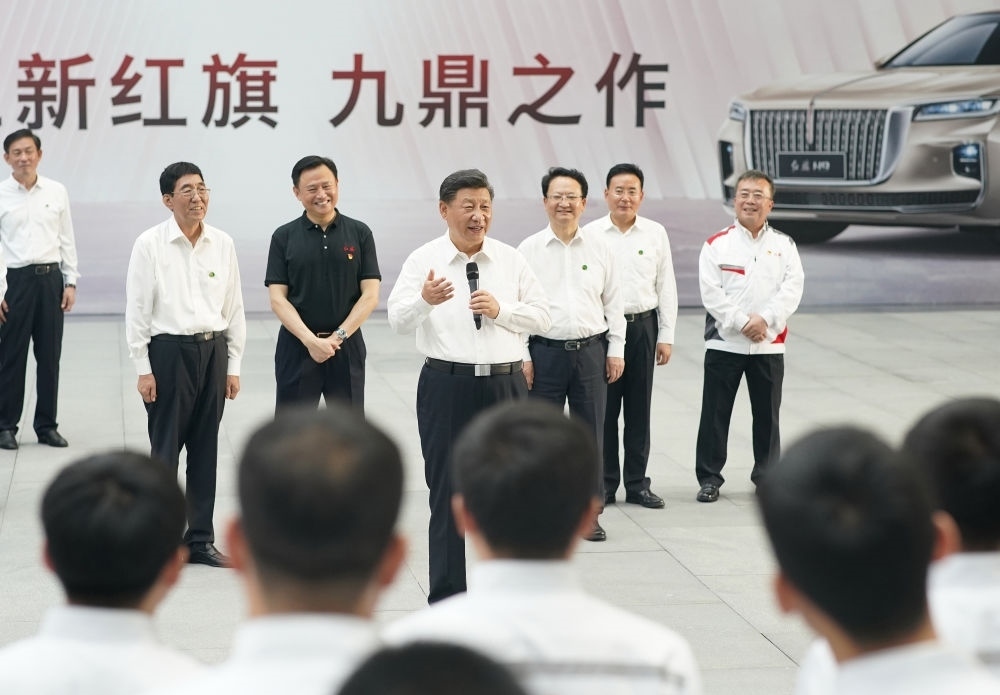 2020年7月23日下午,習近平在吉林省長春市一汽集團研發(fā)總院,同職工代表親切交流。
