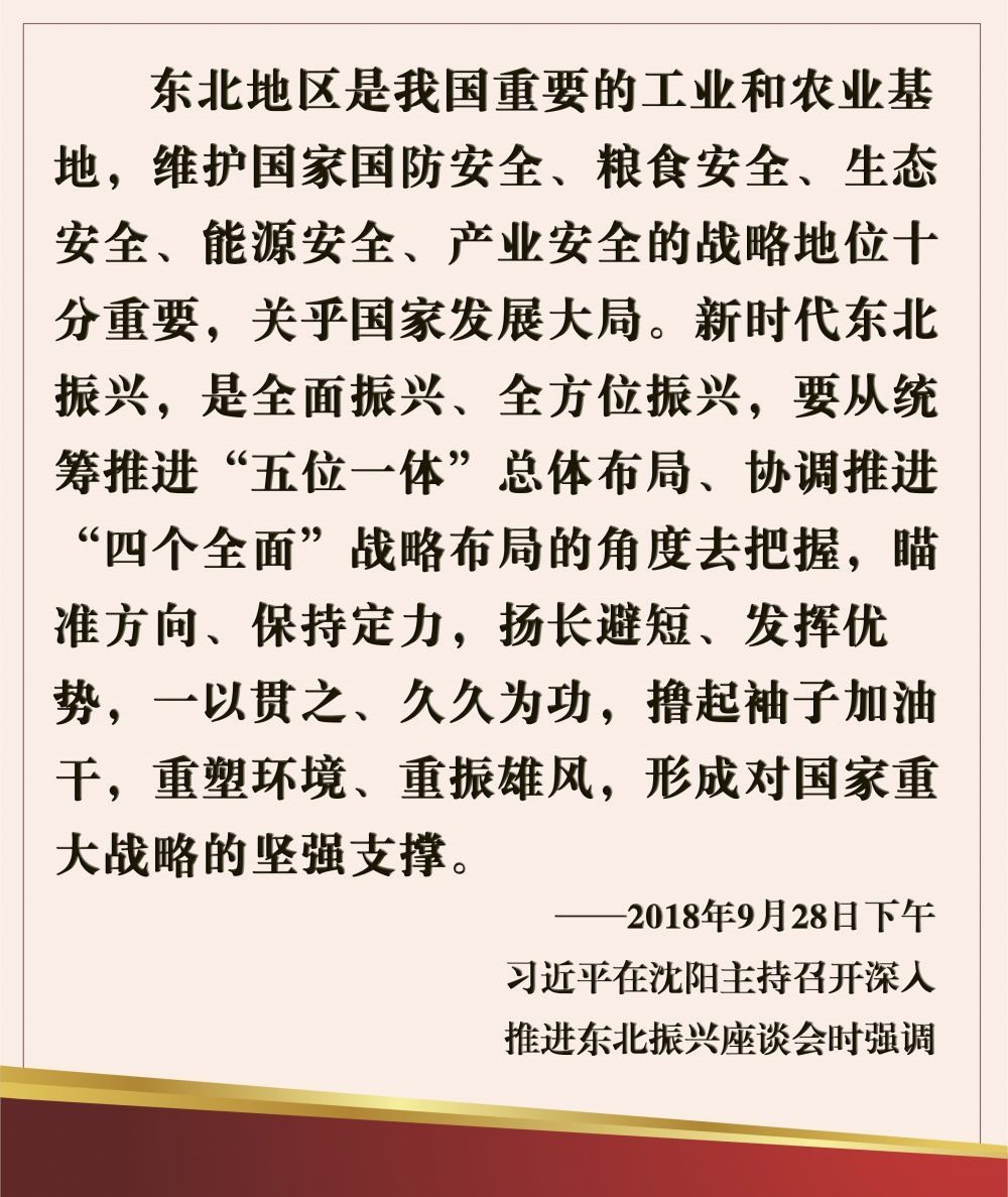 黨中央高度重視東北振興。習近平總書記多次到當地考察調研,他說:“我們對新時代東北全面振興充滿信心、也充滿期待?!?/p>