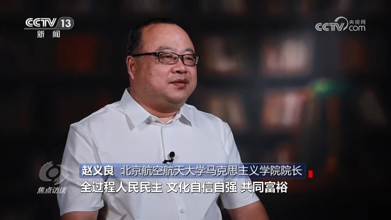 趙義良:“《中國式現(xiàn)代化面對面》這本書蘊(yùn)含了關(guān)于中國式現(xiàn)代化一系列的重要論述,比如‘兩個(gè)結(jié)合’、高質(zhì)量發(fā)展、全過程人民民主、文化自信自強(qiáng)、共同富裕、人類命運(yùn)共同體等一系列原創(chuàng)性的重要的思想和論斷。充分體現(xiàn)了對習(xí)近平新時(shí)代中國特色社會(huì)主義思想的立場觀點(diǎn)方法的科學(xué)運(yùn)用?!?/p>