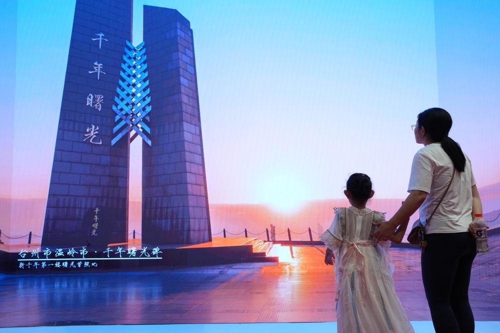 一對母女在杭州舉行的大道之行——“八八戰(zhàn)略”實施20周年大型主題展覽上觀看展示浙江建設(shè)成就的視頻(2023年9月9日攝)。新華社記者 翁忻旸 攝