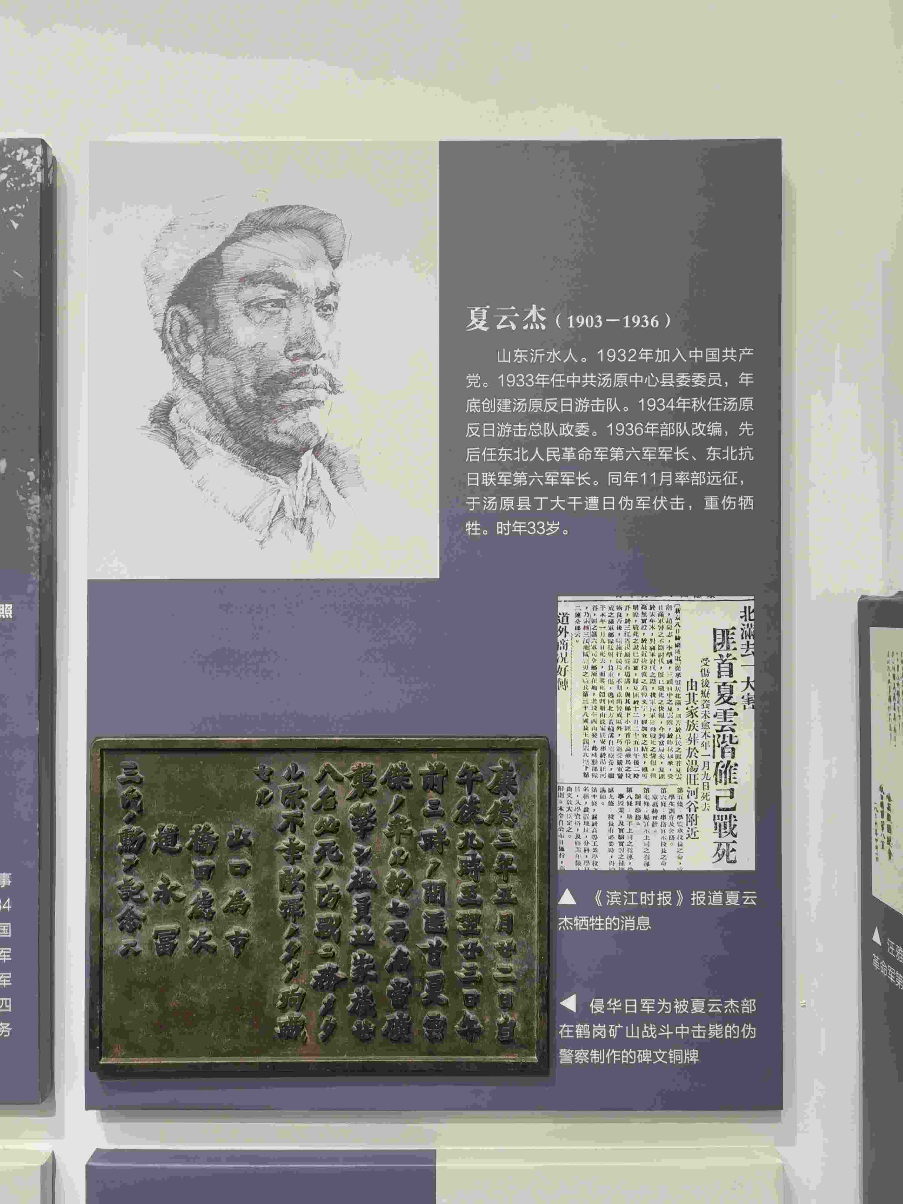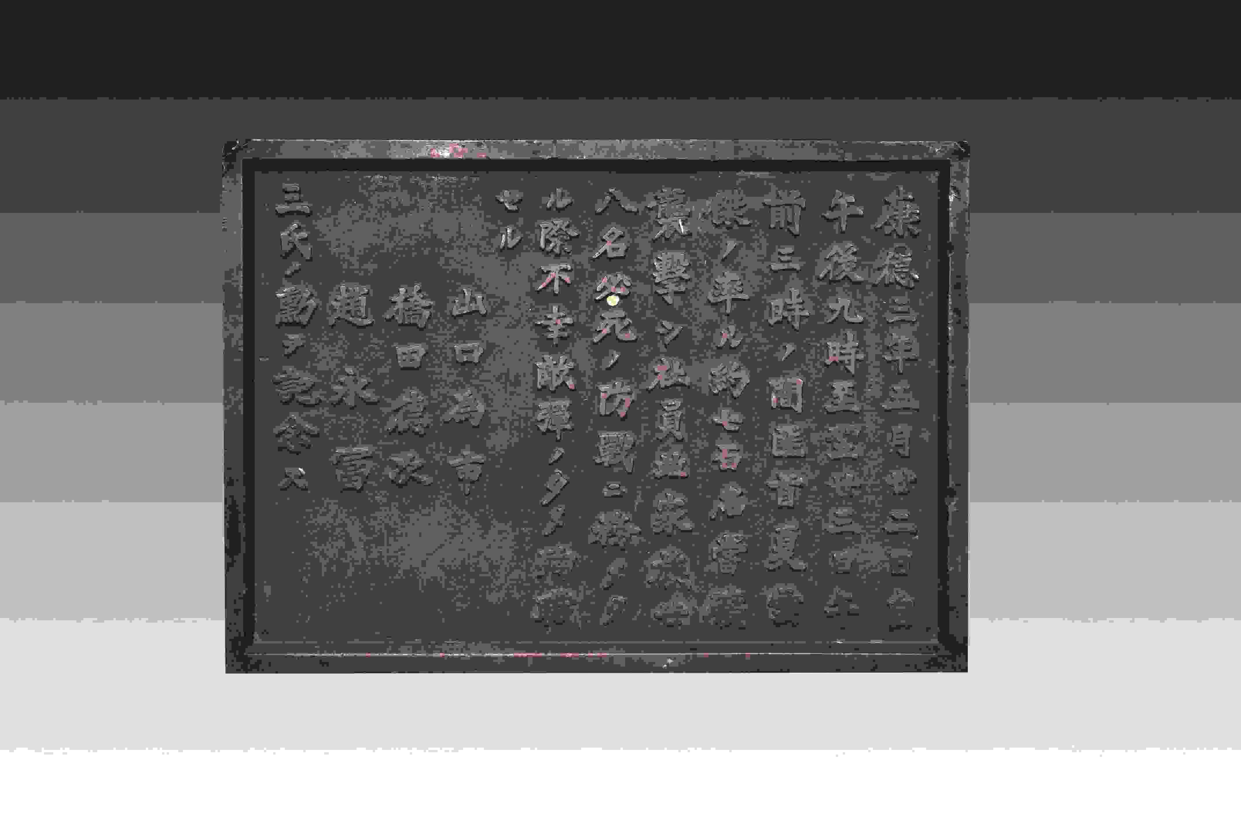 這塊碑文銅牌來自黑龍江鶴崗礦區(qū)的一座“忠靈塔”上,是日本侵略者為侵華戰(zhàn)爭中戰(zhàn)死的日偽軍而建。碑文銅牌,長51厘米、高36.5厘米、寬2厘米、重12千克。上面的文字記載了日偽軍和抗聯(lián)戰(zhàn)士戰(zhàn)斗過程。從表述內(nèi)容來看,這塊碑文具有極大欺騙性。它制造了普通百姓遭土匪襲擊的“無辜”假象,妄圖以此加深東北民眾與革命隊伍之間的對立情緒。而事實(shí)真相是,1936年5月22日夜,東北人民革命軍第六軍軍長夏云杰指揮六軍第一、二、三團(tuán),分兵兩路襲擊了鶴崗礦山。在我黨地下工作人員的密切配合下,順利解除了礦山警察二隊的全部武裝,并擊斃日軍指導(dǎo)官山口為市、橋田德次和偽礦山警察大隊隊長趙永富。這次戰(zhàn)斗繳獲敵人大批槍支彈藥,我軍無一人傷亡。23日凌晨,夏云杰率領(lǐng)部隊攜帶戰(zhàn)利品凱旋。