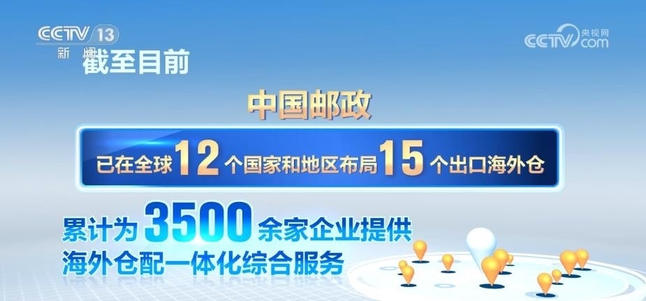 截至目前,中國郵政已在全球12個國家和地區(qū)布局了15個出口海外倉,累計(jì)為3500余家企業(yè)提供海外倉配一體化綜合服務(wù)。