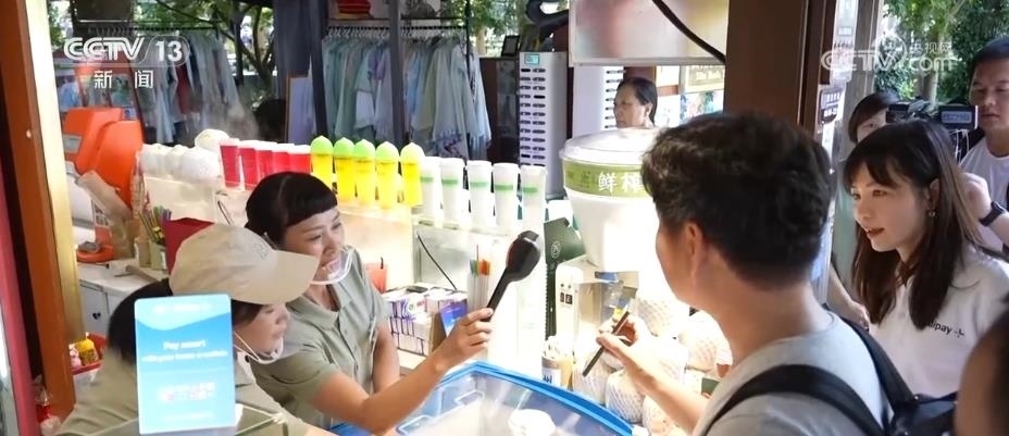在亞運(yùn)特許商品零售店里,高管們開啟了“買買買”模式,當(dāng)他們在付款時可以使用本國的電子錢包進(jìn)行支付。