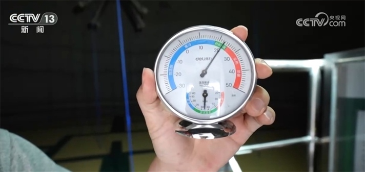 我現(xiàn)在是在氣膜倉(cāng)的頂部,此刻倉(cāng)外的溫度是30℃左右,我們?cè)俚絺}(cāng)內(nèi)看一下。一進(jìn)來(lái)就感覺(jué)倉(cāng)里邊一股涼氣襲人,我們來(lái)看這個(gè)溫度計(jì)上顯示此刻的溫度大概是在22℃,也就是說(shuō)倉(cāng)內(nèi)外的溫差有8℃左右,保溫性能還是非常明顯的。