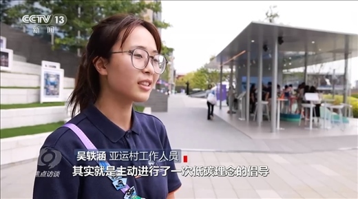 亞運(yùn)村工作人員吳軼涵:“徽章交換中心建筑本身就是以低碳的材料制作而成的,同時(shí)也制作了以低碳材料而制作的徽章,這些徽章給運(yùn)動(dòng)員交換使用。所以每次在這里完成一次徽章交換其實(shí)就是主動(dòng)進(jìn)行了一次低碳理念的倡導(dǎo)。”