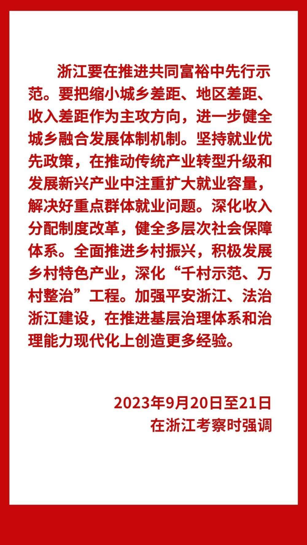 9月20日至21日,中共中央總書(shū)記、國(guó)家主席、中央軍委主席習(xí)近平在浙江考察。20日上午,習(xí)近平來(lái)到金華市義烏市后宅街道李祖村考察調(diào)研,先后在村黨群服務(wù)中心、“共富市集”、扎染商鋪等場(chǎng)所了解李祖村發(fā)展變化情況。他說(shuō),李祖村扎實(shí)推進(jìn)共同富裕,是浙江“千萬(wàn)工程”顯著成效的一個(gè)縮影,要再接再厲,在推動(dòng)鄉(xiāng)村振興上取得更大成績(jī)。鄉(xiāng)村振興潛力無(wú)限、大有可為,鄉(xiāng)親們要努力奮斗,一起奔向共同富裕的美好明天。