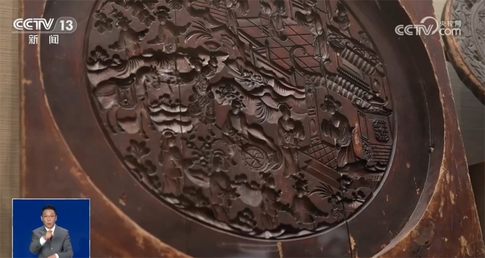 總臺記者 羅子瑛:瞧,我發(fā)現(xiàn)的這塊月餅模具做出來的月餅直徑能夠達到五六十公分,上面雕刻的花紋記錄了一位新科狀元回家為母親祝壽的場景??梢哉f月餅這樣一種食物,是用最樸素的方式記錄了人們的美好生活。