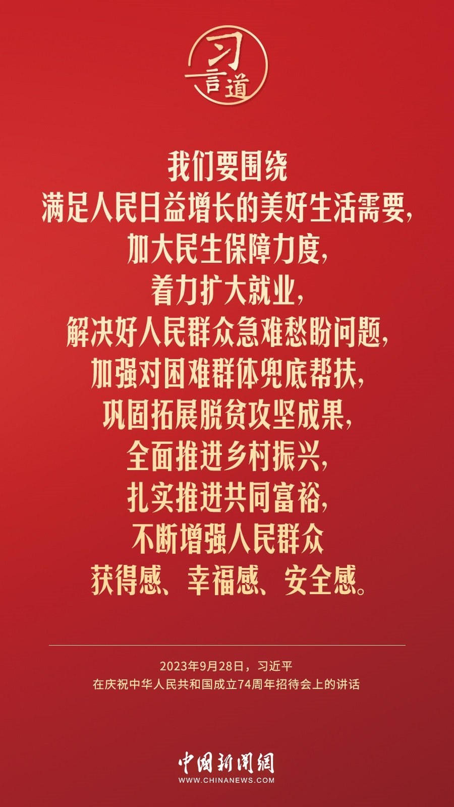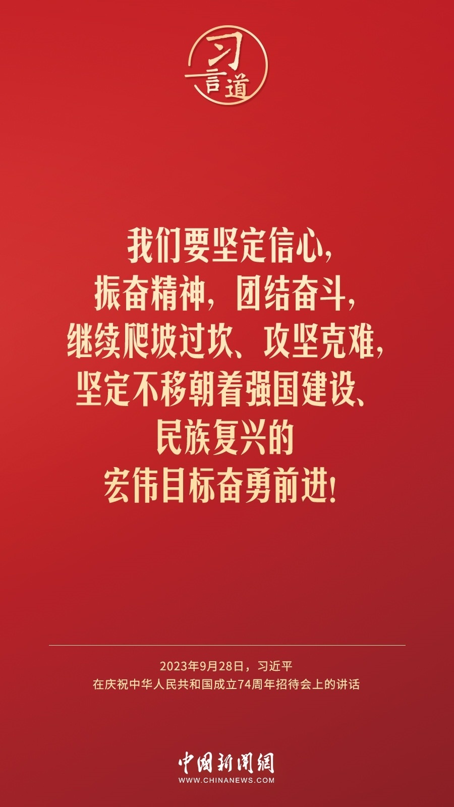 慶祝中華人民共和國成立74周年招待會28日晚在人民大會堂舉行。中共中央總書記、國家主席、中央軍委主席習(xí)近平出席招待會并發(fā)表重要講話。他強調(diào)——