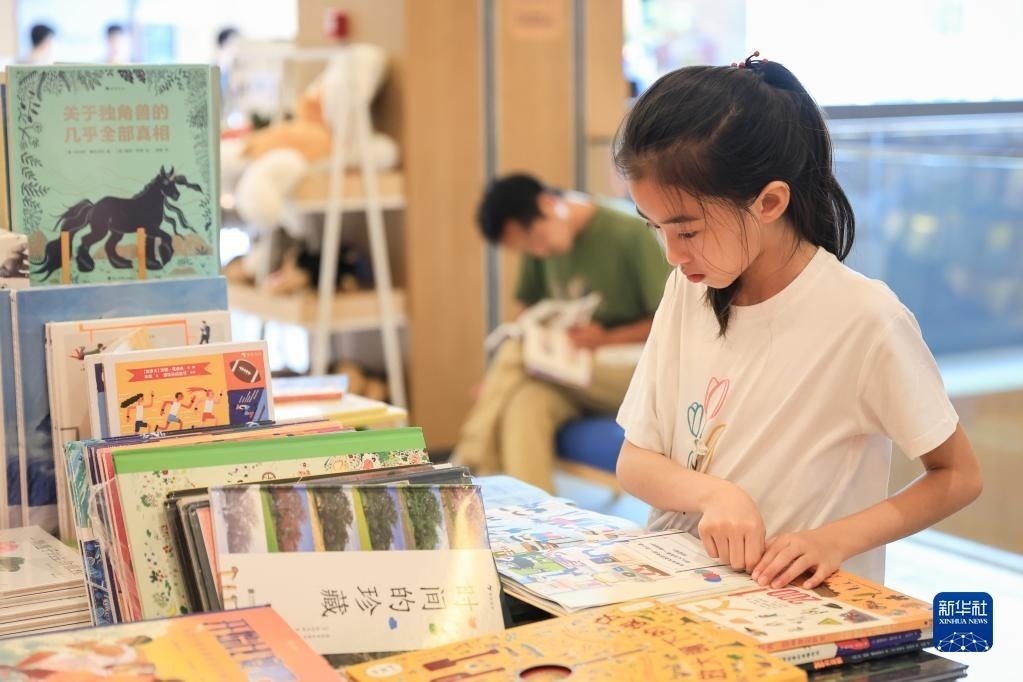 7月8日,小讀者在南京一家書店內(nèi)閱讀。