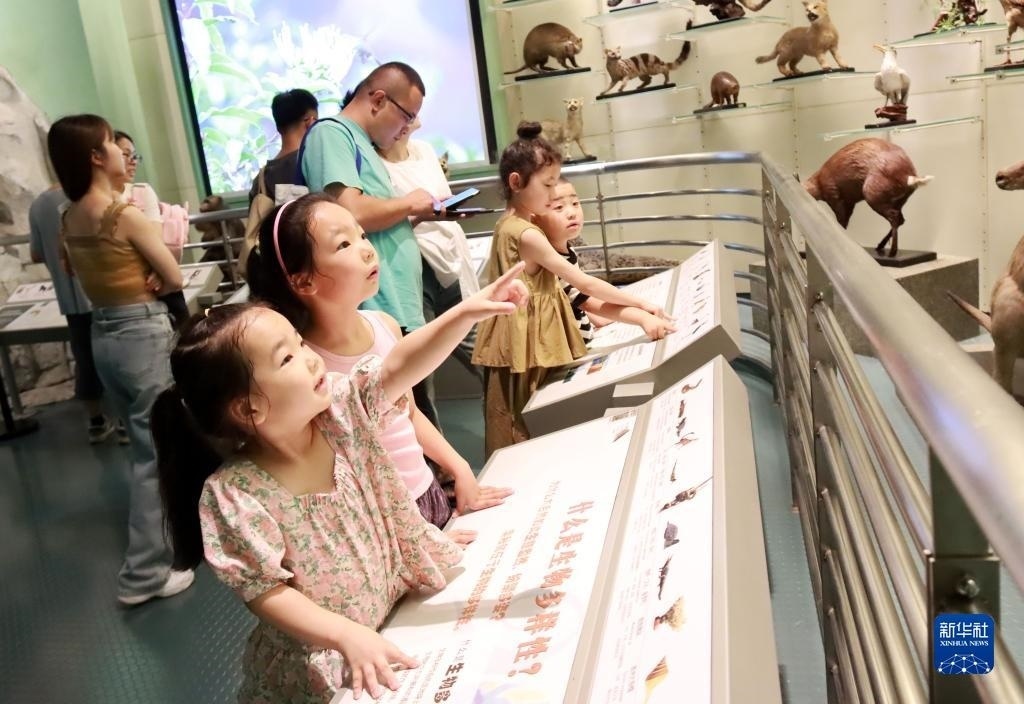 7月8日,小觀眾在江蘇常州博物館參觀動物標(biāo)本。