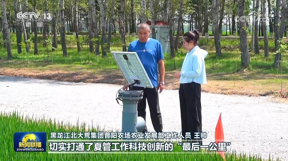 在北大荒普陽(yáng)農(nóng)場(chǎng)第四管理區(qū)的水稻種植地塊,一套集災(zāi)情氣象、土壤墑情、病蟲害和苗情長(zhǎng)勢(shì)監(jiān)測(cè)于一體的農(nóng)情監(jiān)測(cè)設(shè)備,正在24小時(shí)不間斷地對(duì)水稻生長(zhǎng)進(jìn)行全面監(jiān)控。