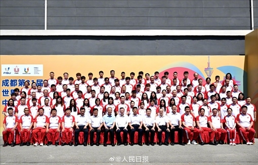 ·成都大運(yùn)會(huì)中國大學(xué)生體育代表團(tuán)成立,中國代表團(tuán)由700多人組成,其中411名運(yùn)動(dòng)員將參加全部18個(gè)大項(xiàng)的角逐,實(shí)現(xiàn)了“滿項(xiàng)報(bào)名”的目標(biāo)。