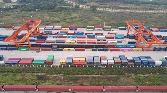 靖邊北站是浩吉鐵路線上最大的煤炭發(fā)運(yùn)車站,隨著供煤需求增長(zhǎng),近期一直高位運(yùn)行。為了更高效地將煤炭快速裝運(yùn)出去,在煤炭物流集裝站里專門安裝了一個(gè)快速定量裝車系統(tǒng),可以非常精確地把煤炭裝入每節(jié)車廂里。80噸重的煤裝入車廂只需要1分鐘左右時(shí)間,裝滿1列萬(wàn)噸運(yùn)煤專列,只要一個(gè)半小時(shí)。