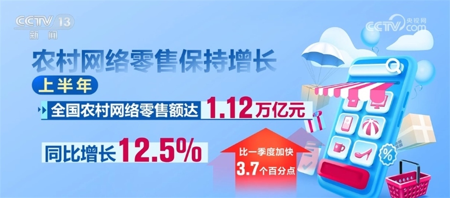 農(nóng)村網(wǎng)絡零售保持增長。上半年,全國農(nóng)村網(wǎng)絡零售額達1.12萬億元,同比增長12.5%,比一季度加快3.7個百分點。其中,農(nóng)村實物商品網(wǎng)絡零售額1.02萬億元,同比增長11.3%。全國農(nóng)產(chǎn)品網(wǎng)絡零售額0.27萬億元,同比增長13.1%。