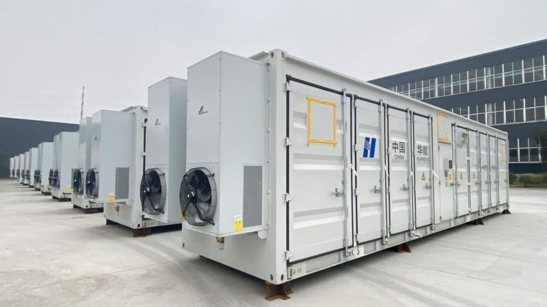 齊魯儲(chǔ)能谷零碳智慧產(chǎn)業(yè)園的儲(chǔ)能車間外擺放整齊的儲(chǔ)能集裝箱