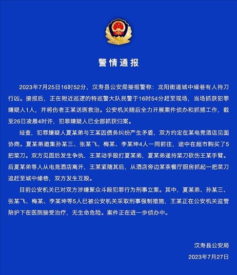 ·湖南漢壽警方通報“多人當街持刀互砍”:債務(wù)問題引發(fā),已刑事立案。
