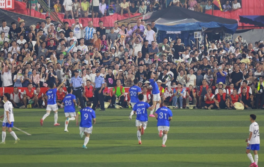 事實(shí)上,從5月13日舉辦以來,“村超”球場上的激烈對(duì)抗就一直在不斷上演。“世界波”“貼地?cái)亍薄皥A月彎刀”……參賽的“村民選手”們屢現(xiàn)精彩進(jìn)球。