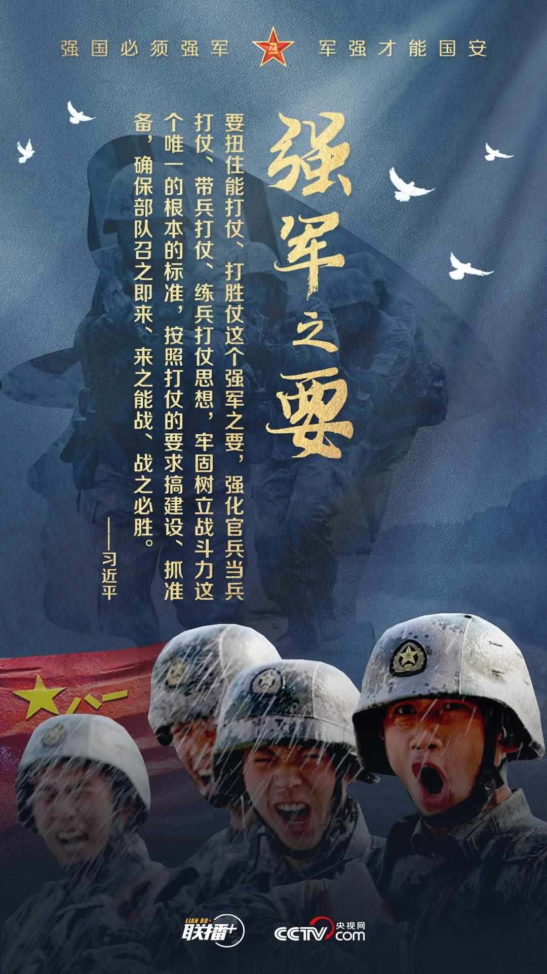 黨的十八大以來,習(xí)近平主席始終高度重視國(guó)防和軍隊(duì)建設(shè),為全軍擘畫強(qiáng)軍興軍藍(lán)圖、指引奮進(jìn)方向。值此中國(guó)人民解放軍建軍96周年之際,央視網(wǎng)《聯(lián)播+》欄目制作強(qiáng)軍海報(bào),與您一起學(xué)習(xí)習(xí)主席的強(qiáng)軍思想。