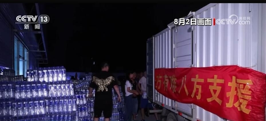 保定新發(fā)地聯(lián)農(nóng)蔬菜果品批發(fā)市場(chǎng)工作人員 劉立國(guó):咱們帶來(lái)的有礦泉水,有黃瓜、西紅柿,包括面包,還有香蕉等等。一整車的物資有十幾噸。