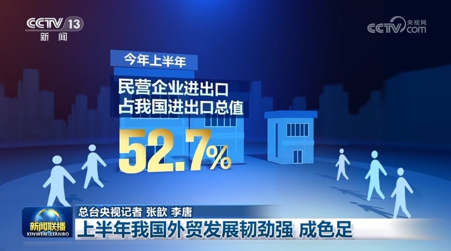 央視網(wǎng)消息(新聞聯(lián)播):今年上半年,在出口面臨較大外需壓力的背景下,我國外貿(mào)頂住了壓力,穩(wěn)住了規(guī)模,提升了質(zhì)量,呈現(xiàn)出韌性和新成色。