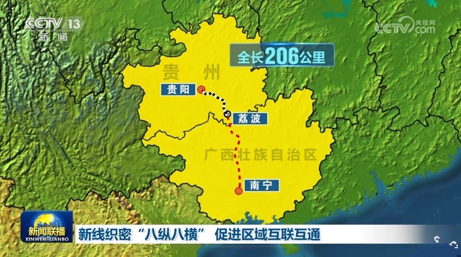 貴南高鐵連接貴陽(yáng)和南寧,是“八縱八橫”高鐵網(wǎng)包頭至海口通道的重要組成部分。正線(xiàn)全長(zhǎng)482公里,是黔桂兩地首條設(shè)計(jì)時(shí)速達(dá)350公里的高速鐵路。此次開(kāi)通的貴陽(yáng)至荔波段,全長(zhǎng)206公里,貴陽(yáng)至荔波最快只需57分鐘。