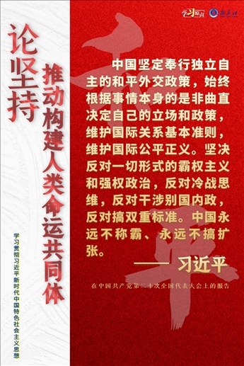 當前,世界之變、時代之變、歷史之變正以前所未有的方式展開。人類社會面臨前所未有的挑戰(zhàn)。世界又一次站在歷史的十字路口,何去何從取決于各國人民的抉擇。中國始終堅持維護世界和平、促進共同發(fā)展的外交政策宗旨,致力于推動構建人類命運共同體。