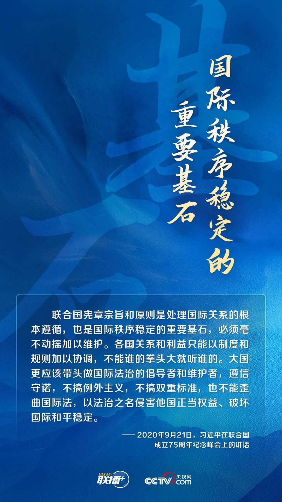 世界上只有一個體系,就是以聯(lián)合國為核心的國際體系;只有一套規(guī)則,就是以聯(lián)合國憲章為基礎的國際關系基本準則。中國始終以實際行動踐行聯(lián)合國憲章宗旨和原則,持續(xù)為人類文明和進步事業(yè)貢獻中國方案,承擔大國責任,展現大國擔當。