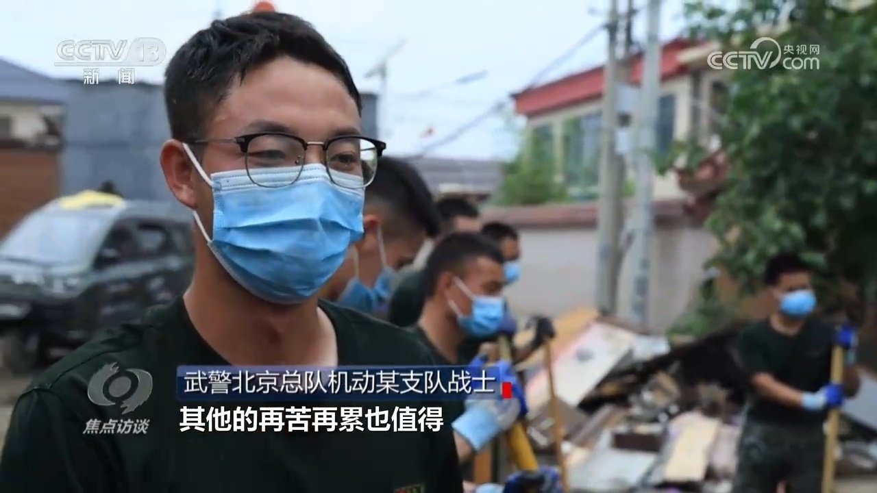 從7月31日接到命令以來,武警北京總隊機動某支隊就派出1450人奮戰(zhàn)在一線,前期參與救援,現在是災后清淤,每天都要工作十小時以上。