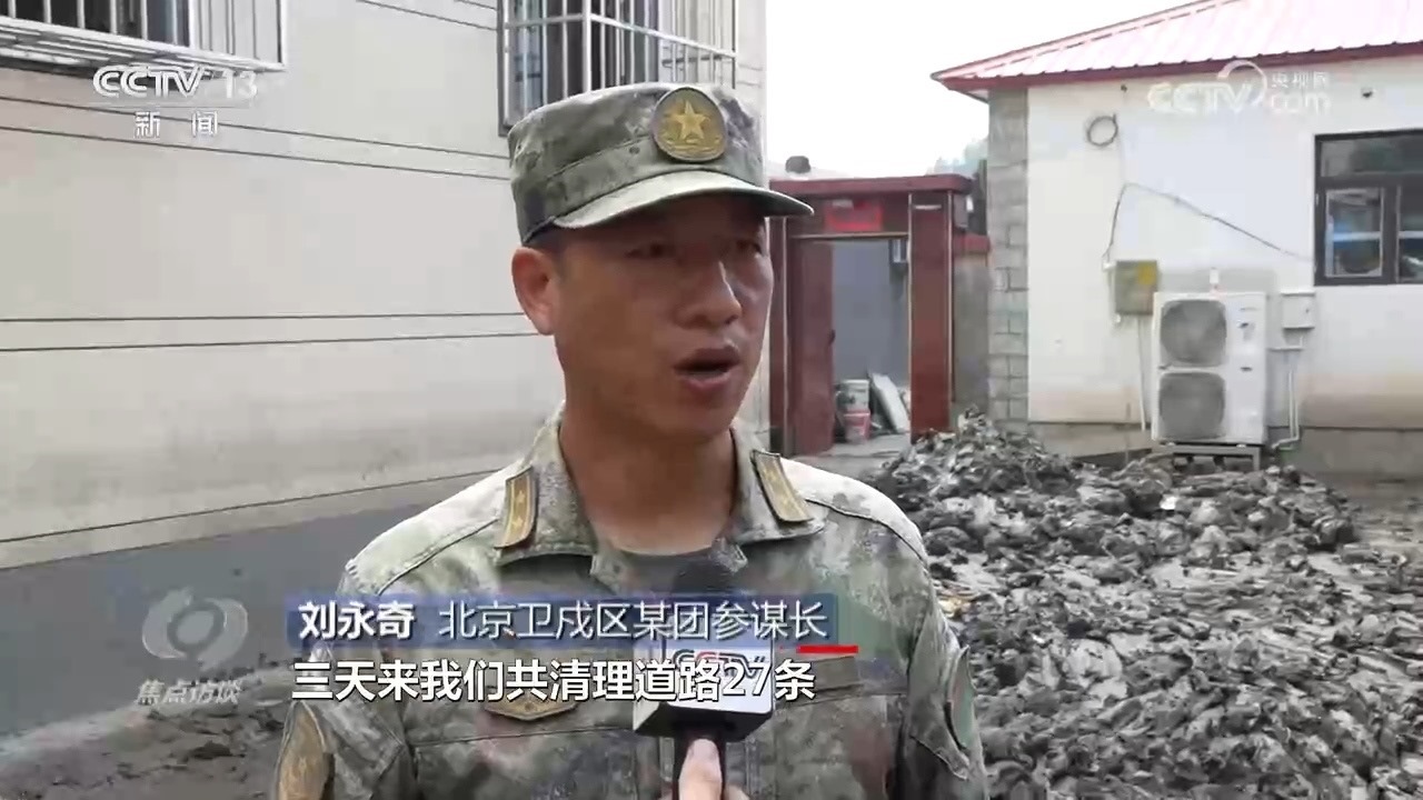 北京衛(wèi)戍區(qū)某團參謀長劉永奇:“三天來,我們共清理道路27條,面積28000余平方米,淤泥700余立方米,廢舊垃圾1300余立方米,全面疏通了各條道路?!?/p>