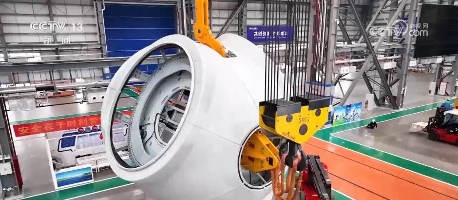 總臺記者 趙雄:在現(xiàn)場我們看到,生產(chǎn)一臺機組所需要的輪轂、發(fā)電機、傳動裝置等各個部件都匯聚在這里,而這些部件都來自不同的供應(yīng)商。