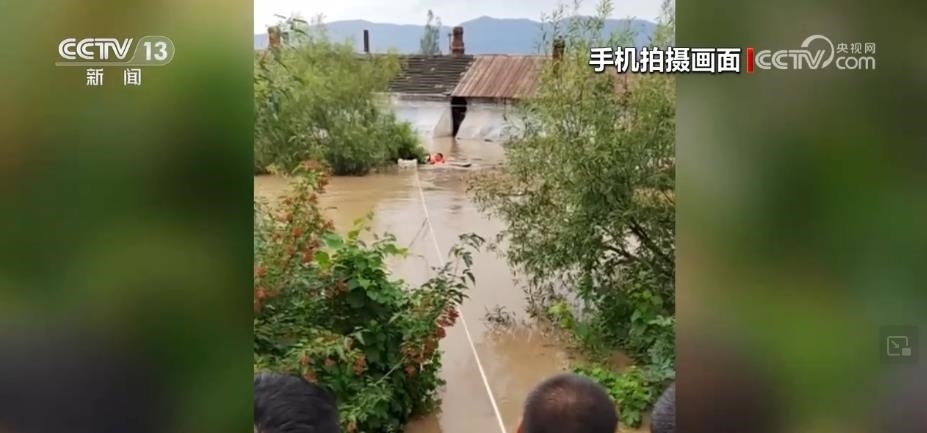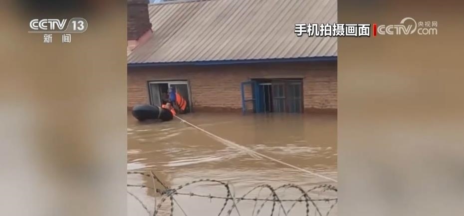孫慶波游到窗戶旁邊,逐一將初淑梅和兒子從屋里救出,兩人先后扶著輪胎,在院外人員的合力拉拽下成功獲救。