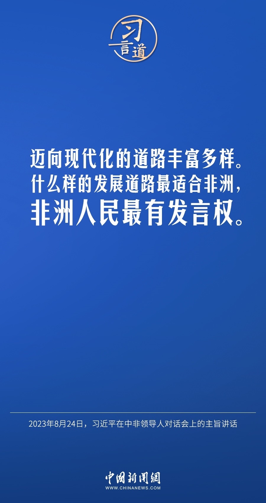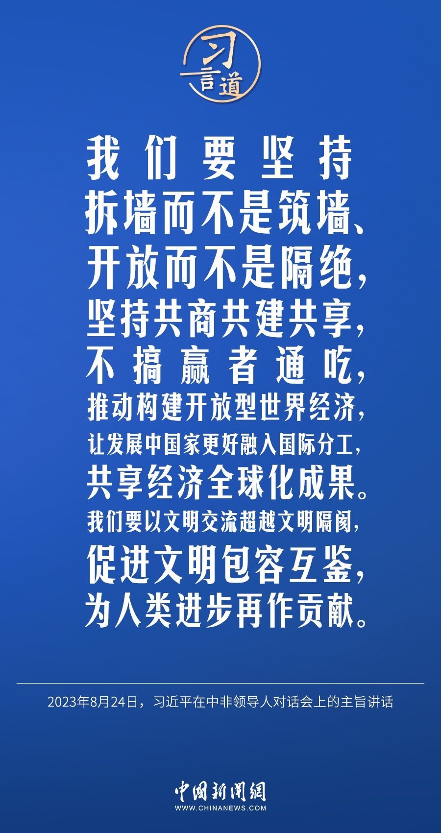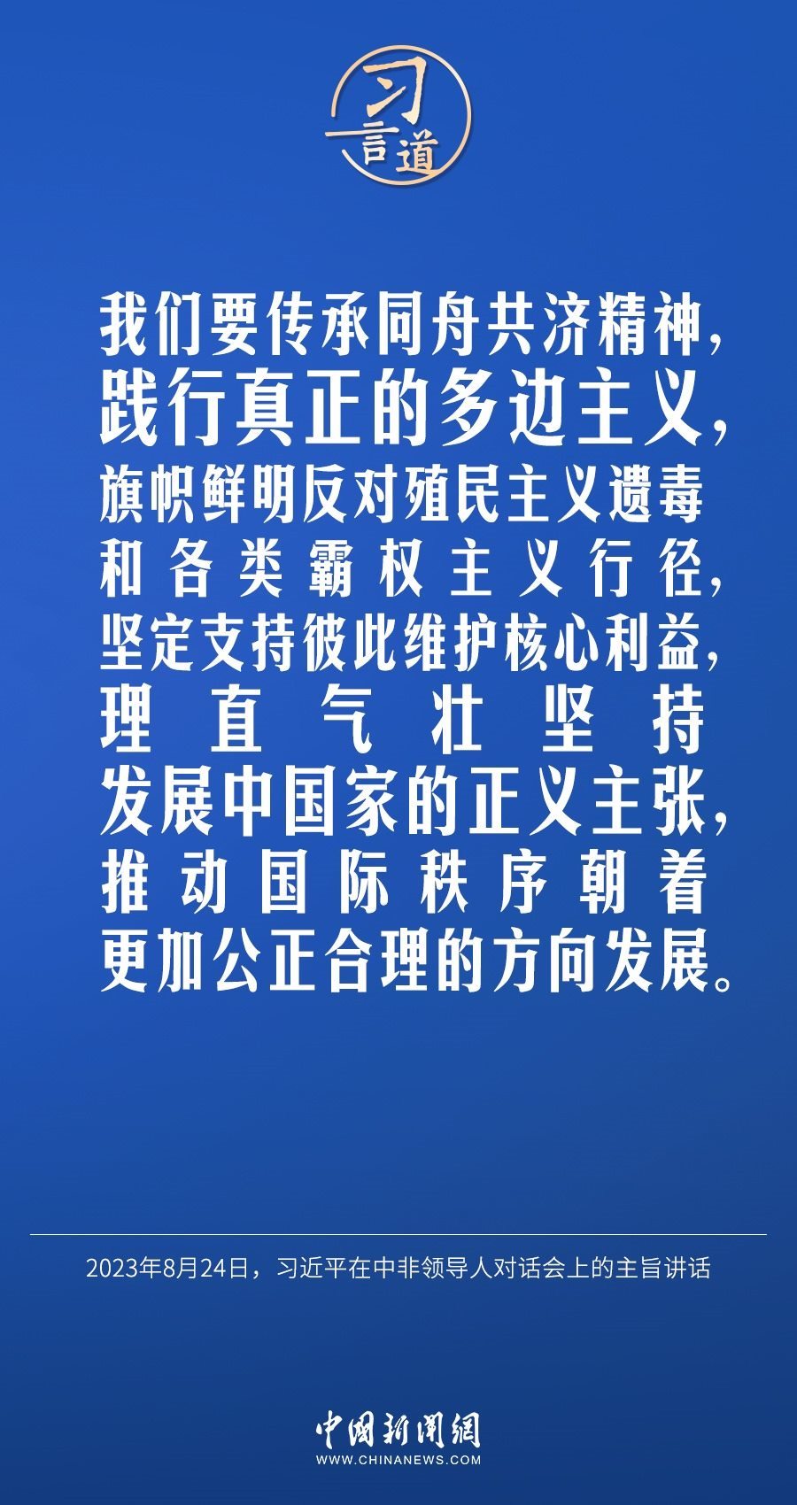 當(dāng)?shù)貢r(shí)間8月24日晚,國(guó)家主席習(xí)近平和南非總統(tǒng)拉馬福薩在約翰內(nèi)斯堡共同主持中非領(lǐng)導(dǎo)人對(duì)話(huà)會(huì)。習(xí)近平發(fā)表題為《攜手推進(jìn)現(xiàn)代化事業(yè) 共創(chuàng)中非美好未來(lái)》的主旨講話(huà)。習(xí)近平指出——