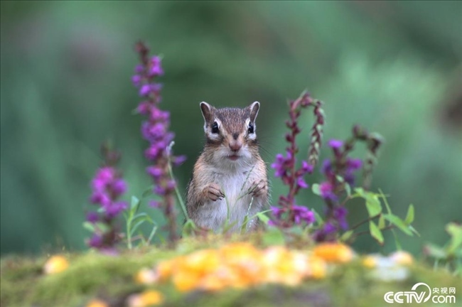 黑龍江大慶:花栗鼠公園內嬉戲覓食。