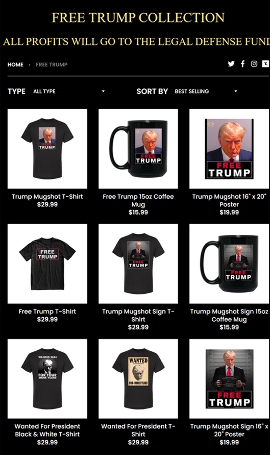 ·為競選造勢?高調投案后,特朗普“監(jiān)獄大頭照”周邊產品開售。