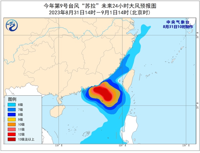 中央氣象臺(tái)8月31日10時(shí)繼續(xù)發(fā)布臺(tái)風(fēng)紅色預(yù)警