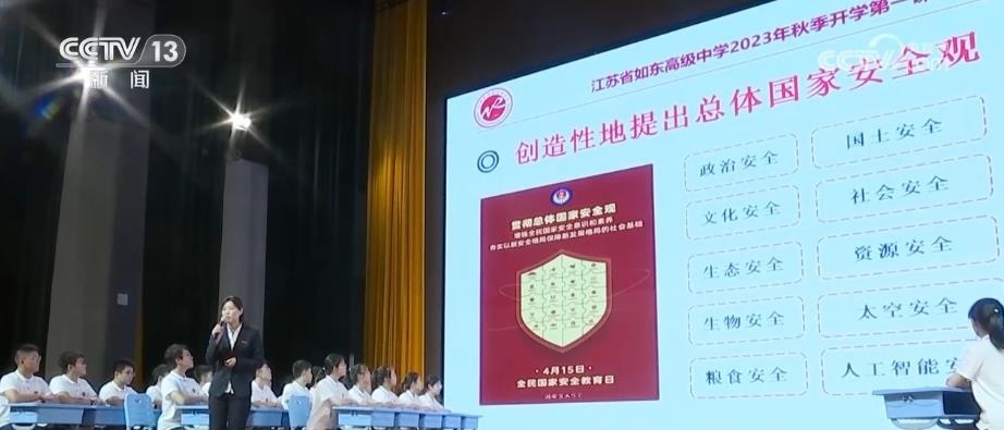 新學(xué)期,江蘇如東高級(jí)中學(xué)800多名高一新生,集中上了一堂主題為“筑牢國(guó)家安全基石,自覺(jué)維護(hù)國(guó)家安全”的思政課。通過(guò)觀看視頻、現(xiàn)場(chǎng)問(wèn)答、教師授課等方式,引導(dǎo)同學(xué)們樹(shù)立國(guó)家安全意識(shí)。