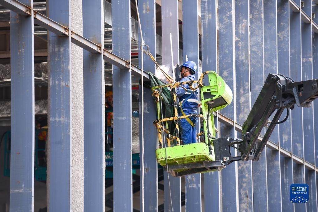 8月30日,在河套深港科技創(chuàng)新合作區(qū)首批重點項目河套壹號(原名:深港科創(chuàng)綜合服務中心)建設現場,中建深裝的工人進行幕墻鋼龍骨焊接作業(yè)。新華社記者 梁旭 攝