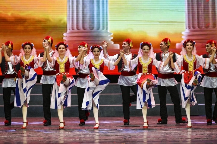 7月21日,哈薩克斯坦薩爾塔納國家舞蹈團在新疆人民劇場登臺首演,為觀眾帶來歌舞晚會《富饒的家鄉(xiāng)》。