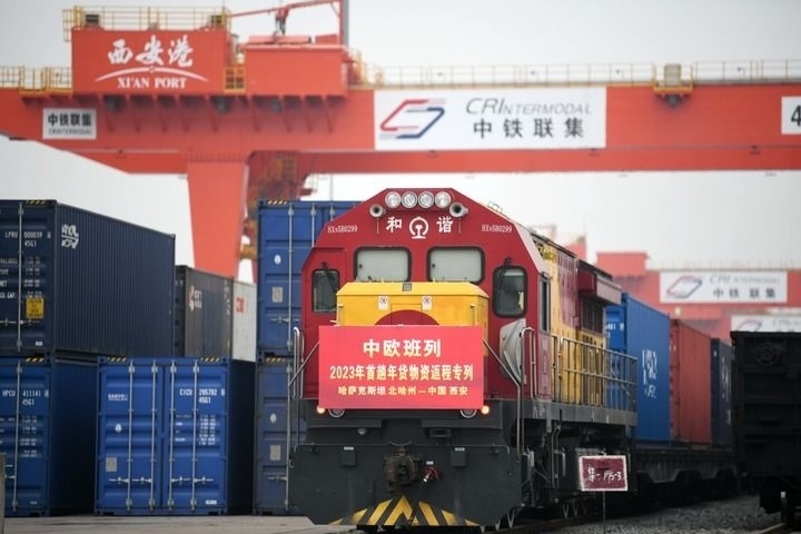 1月13日,滿載著來自哈薩克斯坦1300噸面粉的中歐班列抵達西安國際港站。這標志著2023年首趟中歐班列年貨物資返程專列順利抵達西安,為即將到來的春節(jié)拉來了“洋年貨”。
