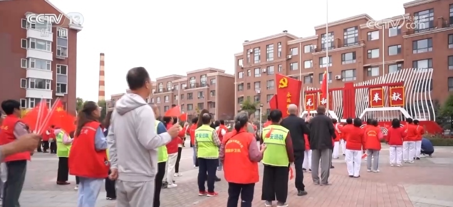 國慶假期,早上8時,小區(qū)升旗儀式準(zhǔn)時開始。
