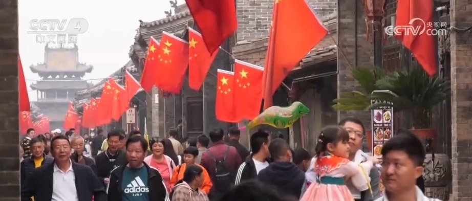 在山西平遙、廣西陽(yáng)朔、江蘇泰州等地,一面面國(guó)旗熱烈醒目、一條條街道花團(tuán)錦簇。