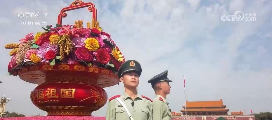 在北京,天安門廣場內(nèi)祝福祖國的巨型花籃吸引著眾多游客前來觀賞拍攝。武警官兵在完成好巡邏執(zhí)勤任務(wù)的同時,協(xié)助工作人員進行游客疏導(dǎo)也成為一項重要的工作。