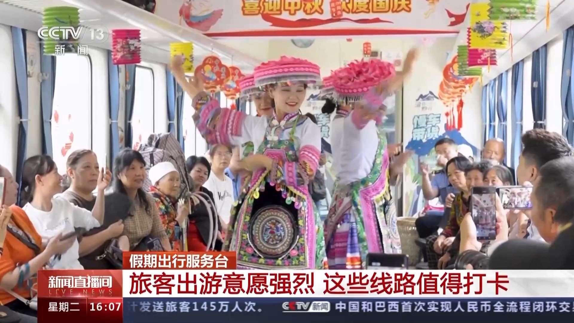 乘坐D1865次動車組列車從重慶到桐梓,不僅運行時間短,67元的票價也相對便宜。旅客可以在車廂里感受濃厚的節(jié)日文化氛圍,還能欣賞沿途渝貴地區(qū)獨有的山水秋色美景。