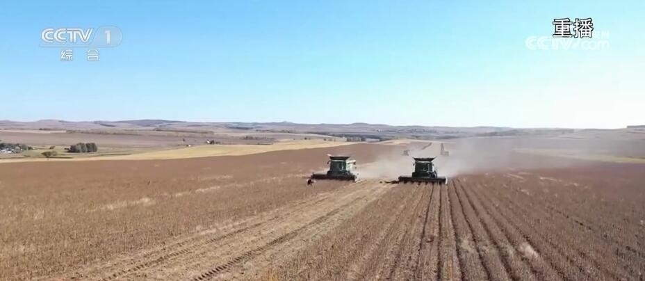 在內(nèi)蒙古,呼倫貝爾阿榮旗的21.8萬畝大豆,在這個(gè)國(guó)慶節(jié)假期率先開鐮收割。在收割現(xiàn)場(chǎng),大型聯(lián)合收割機(jī)全速推進(jìn)收獲進(jìn)度,確保農(nóng)作物顆粒歸倉。