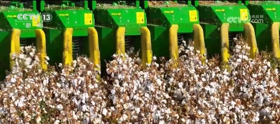 作為棉花主產(chǎn)區(qū),新疆棉花陸續(xù)進(jìn)入采收季?,F(xiàn)在您看到的是位于新疆昌吉瑪納斯縣的棉田。采棉機(jī)在田里穿行,所到之處,棉花從棉稈上脫離,氣流將棉花推送到儲(chǔ)存棉箱,采凈率高達(dá)95%以上。這樣一臺(tái)采棉機(jī)每天可采收700余畝棉花。瑪納斯是國(guó)家級(jí)優(yōu)質(zhì)商品棉生產(chǎn)基地。從播種到采收,這里的機(jī)械化,大大提高作業(yè)速度和棉花質(zhì)量。